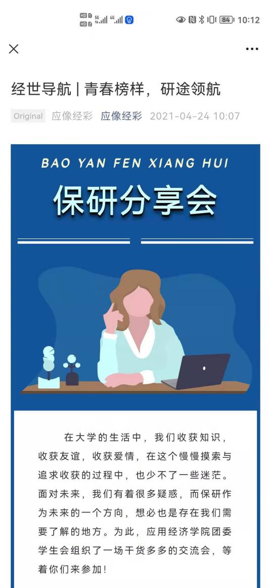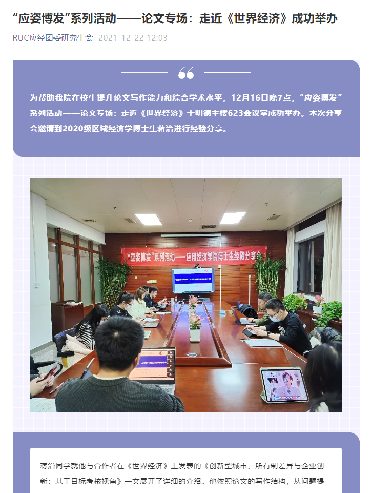 在梳理员工学习、科研、求职需求的基础上,提前规划介入,围绕应经学子不同层次不同阶段的各类需求,以入学指南回答新生同学关于学业生涯的疑惑,以朋辈分享扫清应经学子学习中的困惑,以“Stata系列讲座”助力应经学子打磨科研利器,以“四高”加油站、“良师小灶”帮助应经学子攻克课业学习难关,以“应姿博发”带领应经学子深入科研发表之路。系列品牌活动持续帮助学子解决求学之路上的困难,助力员工加速提升专业本领充实学子科研理论库、工具库,求职就业技能库,提升全院学子求学热情和专业本领。