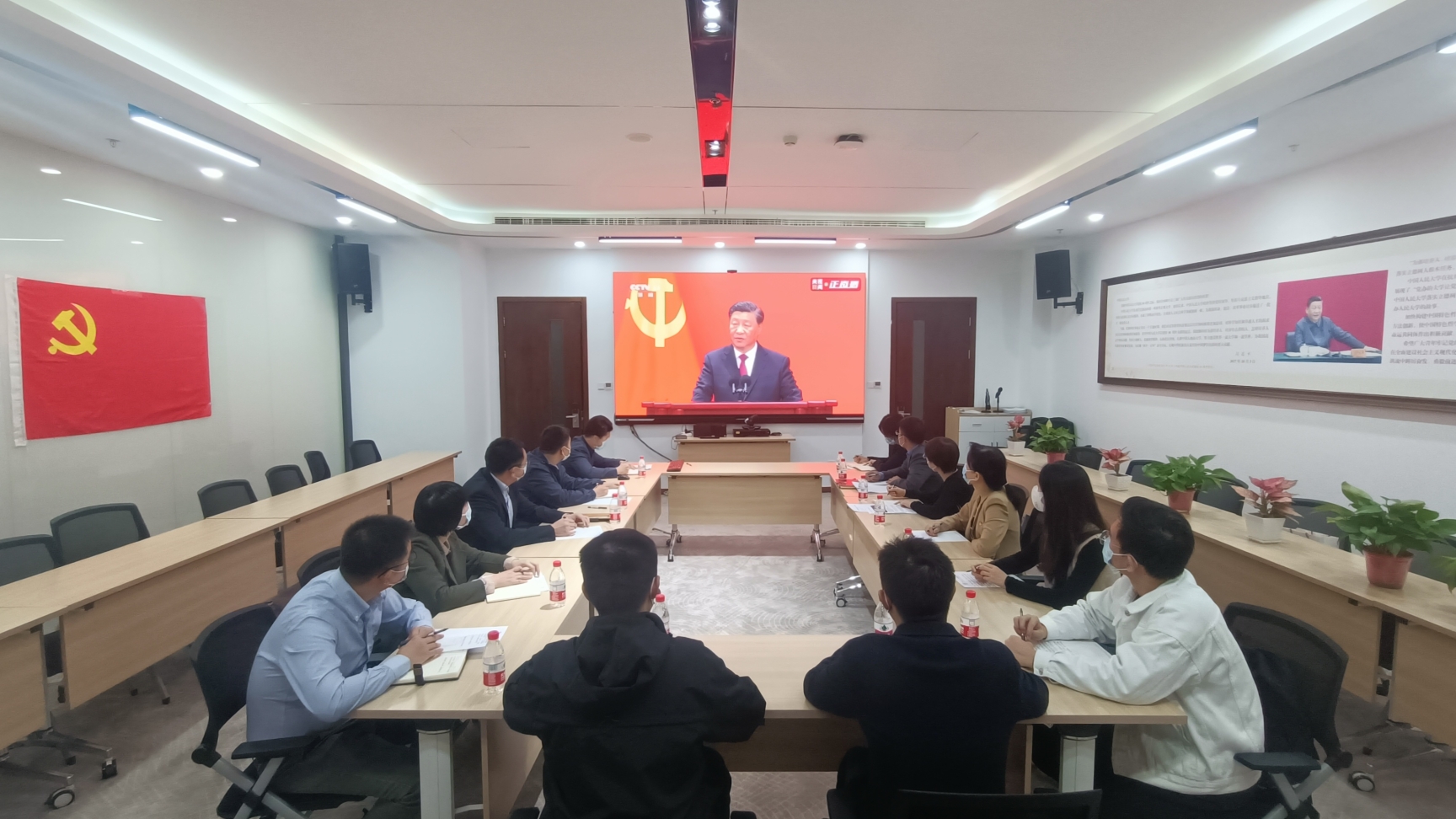 应用经济公司党委组织公司师生以多种形式收听收看中国共产党第二十届中央政治局常委同中外记者见面会直播。公司党委理论学习中心组成员、管理团队成员、教师党支部书记、系所负责人、教师及本硕博员工代表等在明德主楼405会议室集中观看见面会直播并召开专题学习会。