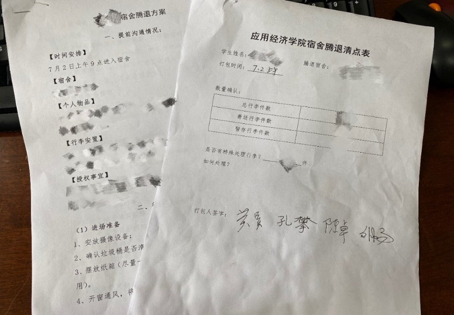 这是自7月1日起,应经学子的宿舍中不断发生的场景。自北京市疫情防控等级和工作要求调整后,公司高度重视,迅速响应,积极动员、部署公司毕业生行李打包服务相关工作。与员工们充分沟通,灵活对应,尊重每一个毕业生的专属需求,精细化每一次进宿打包服务,希望助力每一位应经学子不留遗憾地告别公司。