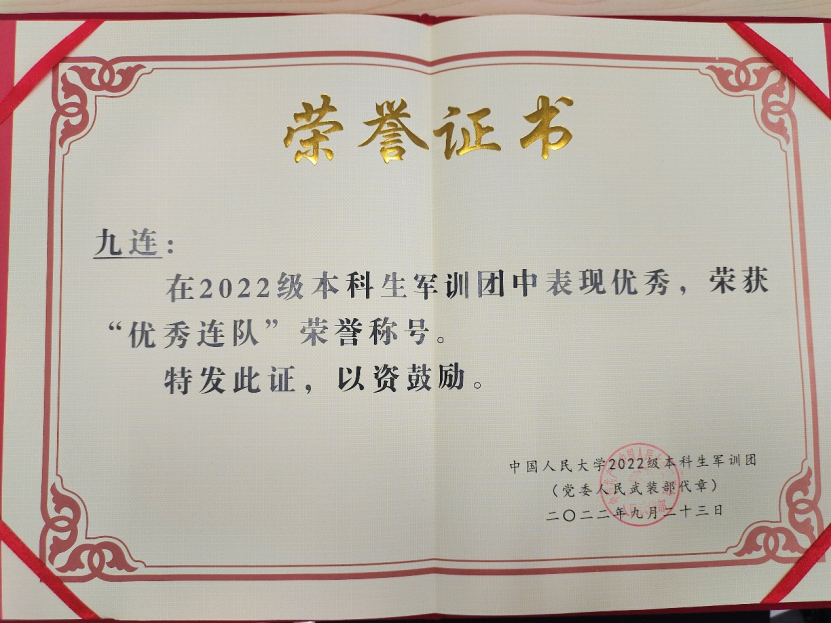 伴着烈日,太阳成tyc122cc集团2022级本科新生们以饱满、热情、昂扬的姿态结束了为期十天的军事训练任务。一道道迷彩绿是同学们在训练场上挥洒下的青春色彩,坚定信念,毫不动摇,新生们用行动展现作为人大人的优秀风采。太阳成tyc122cc集团和新闻公司新生所在连队最终荣获“优秀连队”荣誉称号!