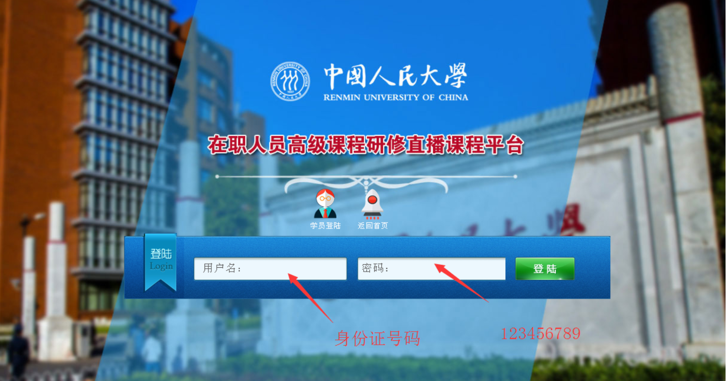 3、输入账号密码:用户名为本人身份证号码,登录密码默认为123456789,登录后立即自行修改密码。