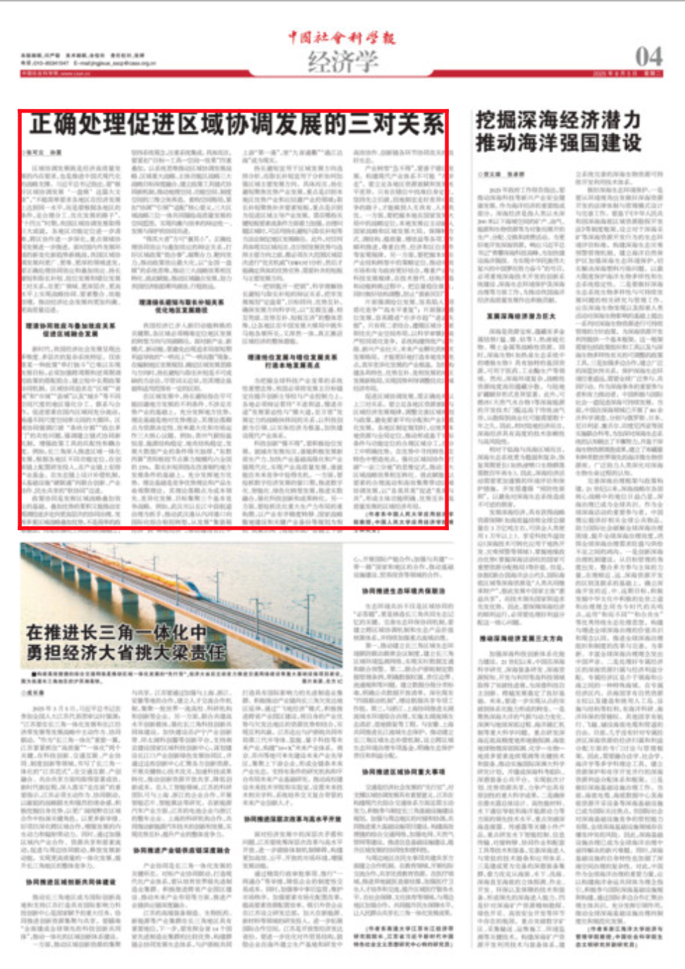 区域协调发展既是经济高质量发展的内在要求,也是推进中国式现代化的战略支撑。习近平总书记指出,要“做好区域协调发展‘一盘棋’这篇大文章”,“不能简单要求各地区在经济发展上达到同一水平,而是要根据各地区的条件,走合理分工、优化发展的路子”。“十四五”时期,我国区域协调发展取得巨大成就,各地区功能定位进一步清晰,跨区协作进一步深化,重点领域协同发展进一步推进。面对国内外发展环境的新变化新趋势新挑战,我国区域协调发展向更广、更难、更深的领域进发,要正确处理协同效应和叠加效应、扬长避短和取长补短、抢位发展和错位发展三对关系,在更广领域、更深层次、更高水平上实现战略协同、要素整合、效能倍增,推动经济社会发展向更加均衡、更高质量迈进。