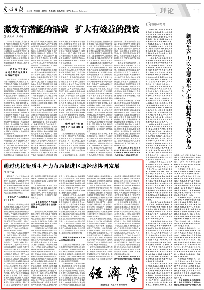 新质生产力“由技术革命性突破、生产要素创新性配置、产业深度转型升级而催生”。发展新质生产力是推动高质量发展的内在要求与关键支撑,也是构建新发展格局的重要抓手。优化新质生产力布局,可以为促进区域经济协调发展、实现区域共同富裕提供新动能、新路径。