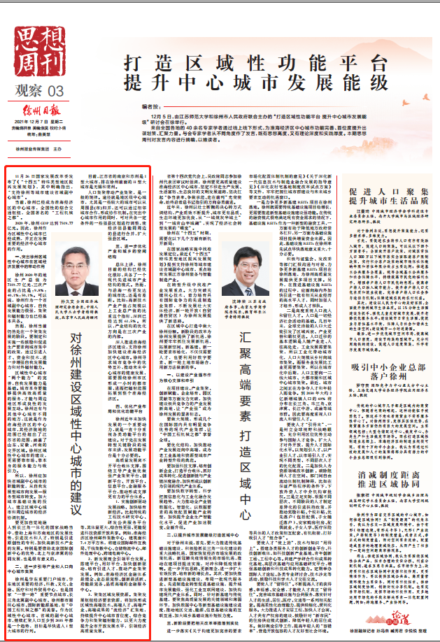 11月26日国家发展改革委发布了《“十四五”特殊类型地区振兴发展规划》,其中明确指出,“支持徐州等城市建设省域副中心城市”。