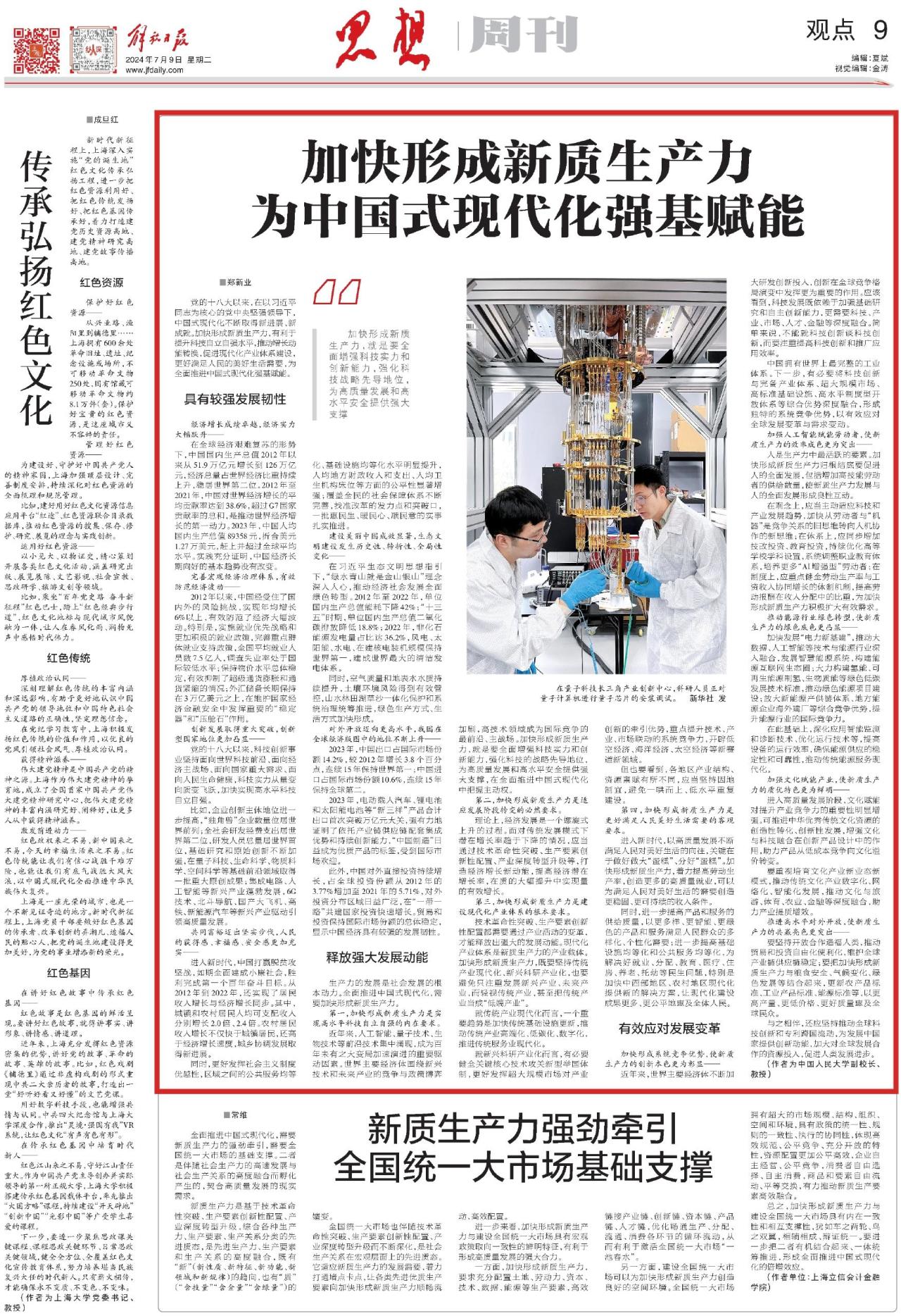 加快形成系统竞争优势,使新质生产力的创新本色更为彰显——