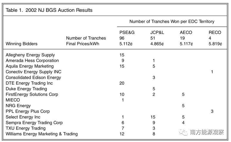 在全电量市场上存在很多通过拍卖手段遴选保底售电公司、提供保底售电服务的成功案例,与行政手段相比,拍卖手段更具市场效率。与商业谈判相比,拍卖手段节约了交易成本。2002年美国新泽西州组织了一场公开拍卖,拍卖物品为未来一年的保底售电服务(Default Service),招标方为新泽西州公共事业单位(配电网公司),竞标方为各地符合标准的发电企业,拍卖方式为同步降序时钟拍卖(Simultaneous Descending Clock Auction,SDCA)。这种方法基于对多轮多物品同步拍卖(Simultaneous Multiple Round Auction,SMR),主要优点有组织交易的成本低、交易过程透明、交易达成的价格有效。经过10天共73轮的投标,4家新泽西州配电商在21家竞标者中选出了15个售电公司,共成交了约17000MW的年度保底合同,成交总金额约40亿美元。这是拍卖手段在保底售电服务中的第一次应用。之后,西班牙、芬兰等电力市场也开始采用拍卖方式竞标保底售电服务。