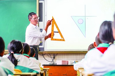 坚守三尺讲台三十九载的山村教师杨红军在为员工授课。新华社发