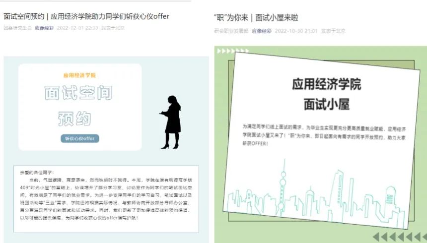 强化信息赋能,搭建立体化就业信息服务平台。建立实习就业信息互助群,在公众号开设“offer‘职’通车”板块,及时收集汇总、编辑推送各类招聘信息,将就业信息第一时间送抵毕业生。