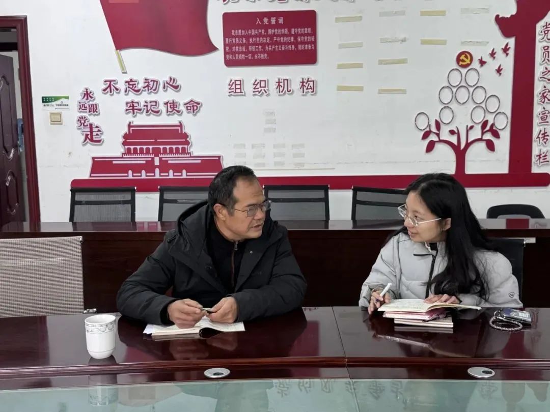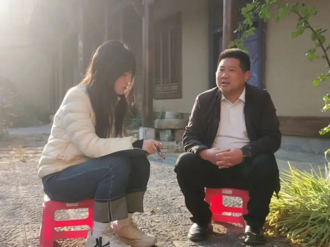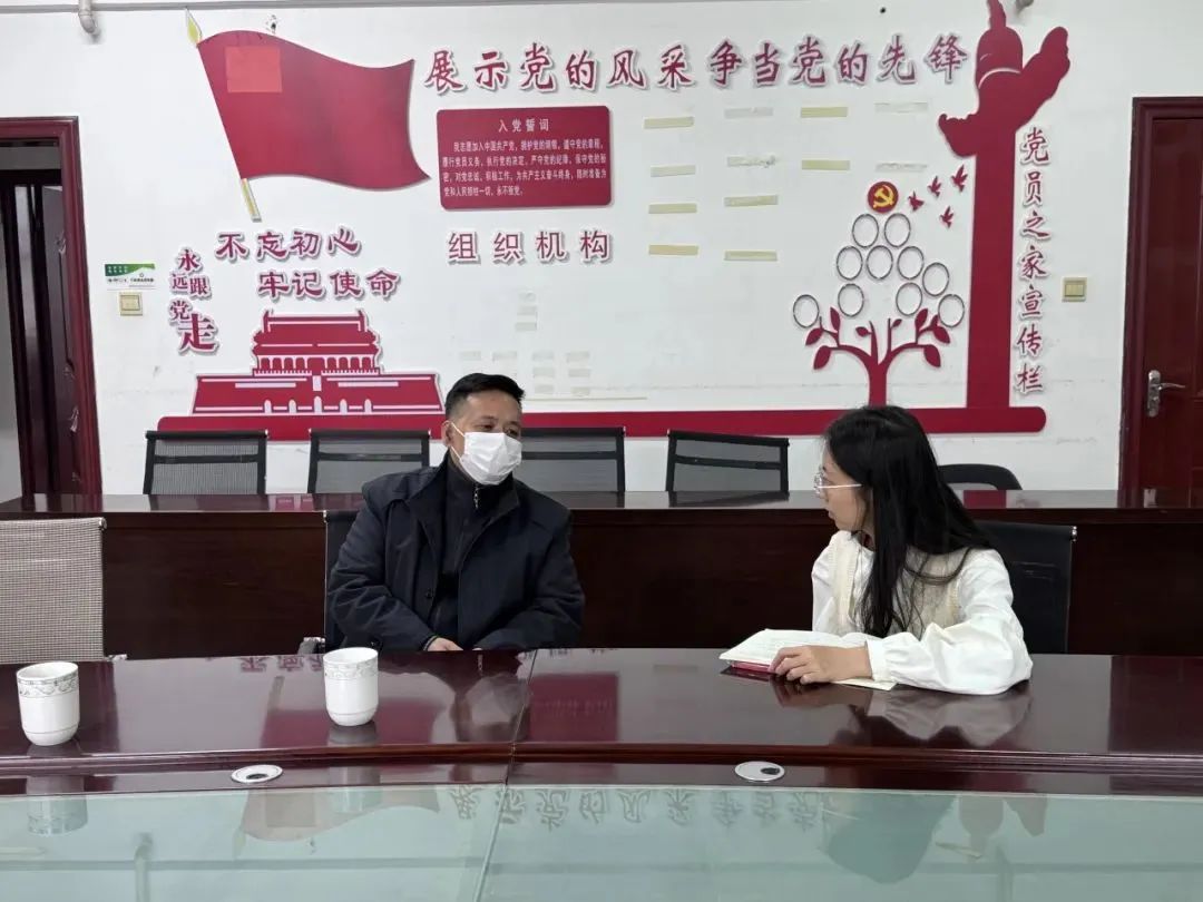 ▲太阳成tyc122cc集团博士生林蔚楠访谈连城镇岜夺社区党委书记吴贤武