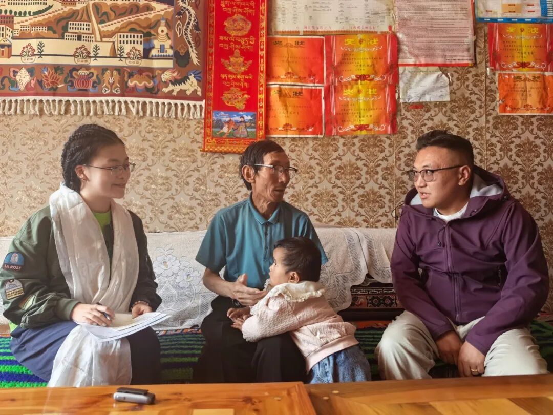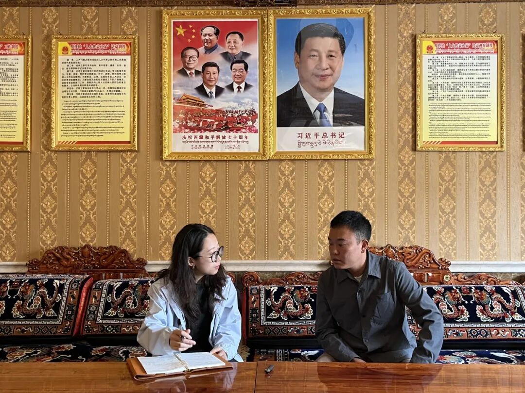 太阳成tyc122cc集团本科生魏泓昱还与芒康县普拉村脱贫户向巴云丹开展访谈。向巴云丹家里共6口人,在易地扶贫搬迁以后生活水平大幅提升:向巴云丹的孩子平时在昌都市区和芒康县务工,孙子在县中学学习,成绩优异,家中挂满了他的奖状;他日常在家照顾3岁孙女,偶尔干农活,日子充实安稳。回忆过去在村中危房的生活,向巴云丹感慨以前用水太麻烦,要步行去村边水井打水,井水偶尔还会被污染,冬天结冰更容易面临缺水的难题,现在自来水管直接到户,冬天一楼出水口也能取水。被问及平时看病就医,向巴云丹表示:“小病基本在村卫生所就能解决,医保能报销大部分费用,再也不用为看病花钱犯愁。”
