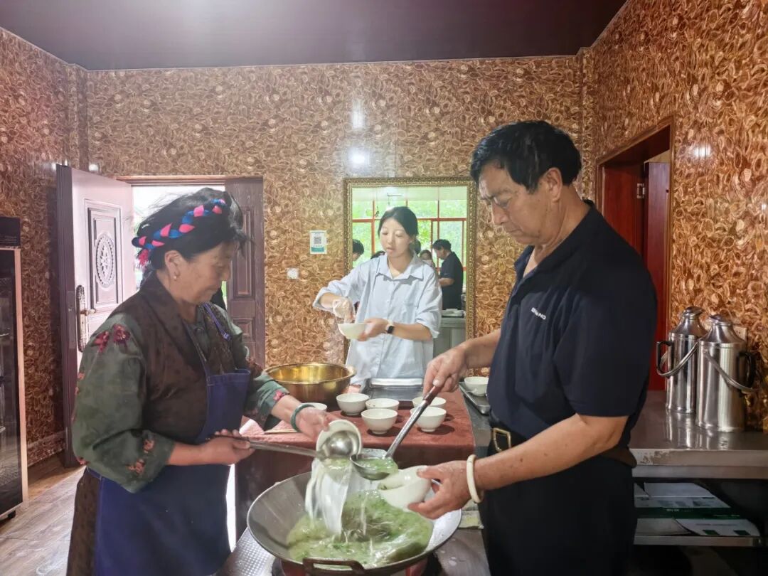 8月8日晚上,马帮踏新队到达纳西民族乡与“果拉丛”藏家乐的经营者果拉卓玛开展访谈。37岁的果拉卓玛是西藏自治区级非遗 “盐井加加面”传承人,2025年获“全国劳动模范”称号。14岁时,她因家庭困境辍学接管濒临倒闭的加加面馆,靠凌晨背盐、深夜洗碗维持生计。2010年,加加面列入区级非遗,她借2.5万元安居补助将面馆改建成“果拉丛”藏家乐。为让非遗“活”起来,她保留青冈灰水和面、老卤熬汤秘方,创新融入藏族祝酒歌、弦子舞,推出“千年盐田+葡萄美酒+加加面”旅游线路。2016年,基于300万元贴息贷款,加上自筹的160万元,她把农家乐升级成集餐饮、住宿、文化体验于一体的综合体。此外,她还开设“加加面公益课堂”,教乡亲手艺,还传授记账、管理等技能,带动十户村民就业,培养出3位民宿老板,用“造血”模式切实带领大家共富。