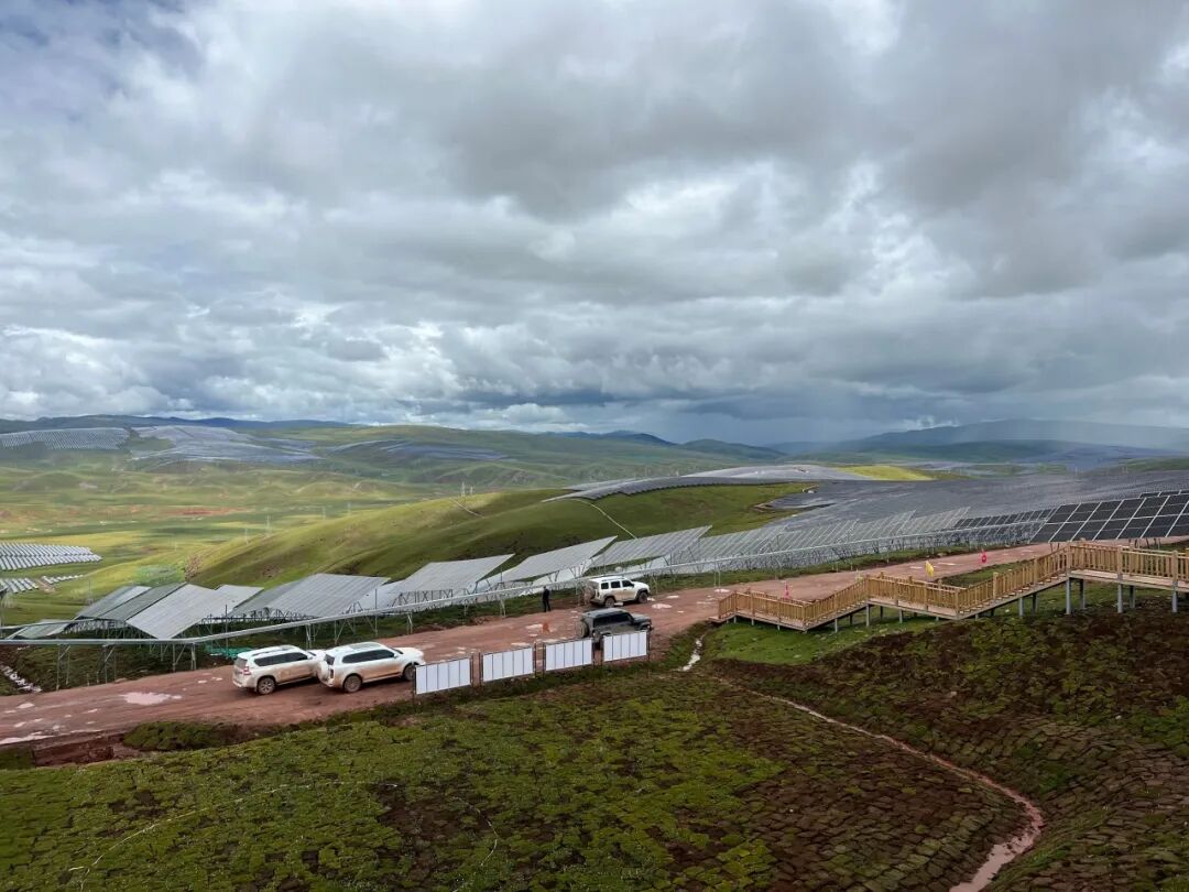 8月9日中午,马帮踏新队到达昂多乡,调研隶属于中国华电的1800兆瓦光伏厂区。该项目位于海拔4200-4800米处,占地约45平方公里,是全球海拔最高、规模最大的在建光伏发电项目,目前已铺设光伏板343万块。项目建成后,将通过特高压直流输电线路向湖北省输送电力,预计年发电量约54亿千瓦时,全年有效发电小时数达1900小时以上,每年可节省标煤约167万吨,减少二氧化碳排放374万吨,为“双碳”目标贡献高原力量。