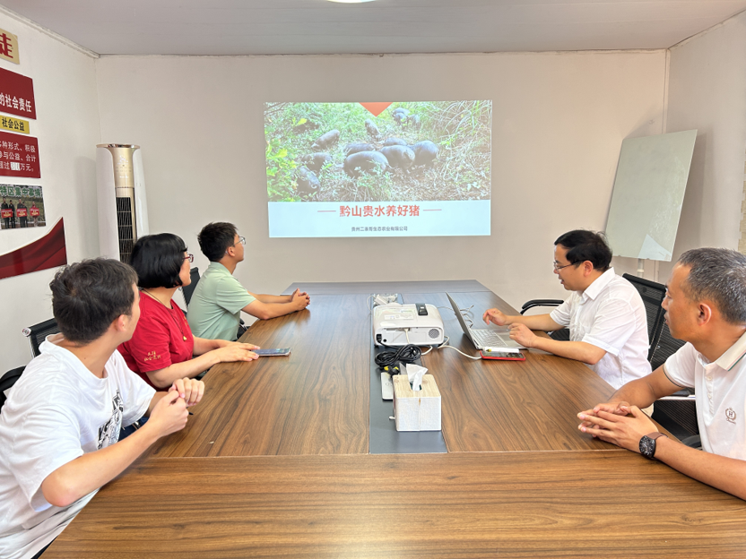 8月9日,在贵州省六盘水市六枝特区,访谈团调研了二表哥生态农业有限公司,以发展本土生态特色的黑毛猪产业助力当地脱贫攻坚的2004届商公司员工王金涛向访谈团师生分享了自己的创业历程。