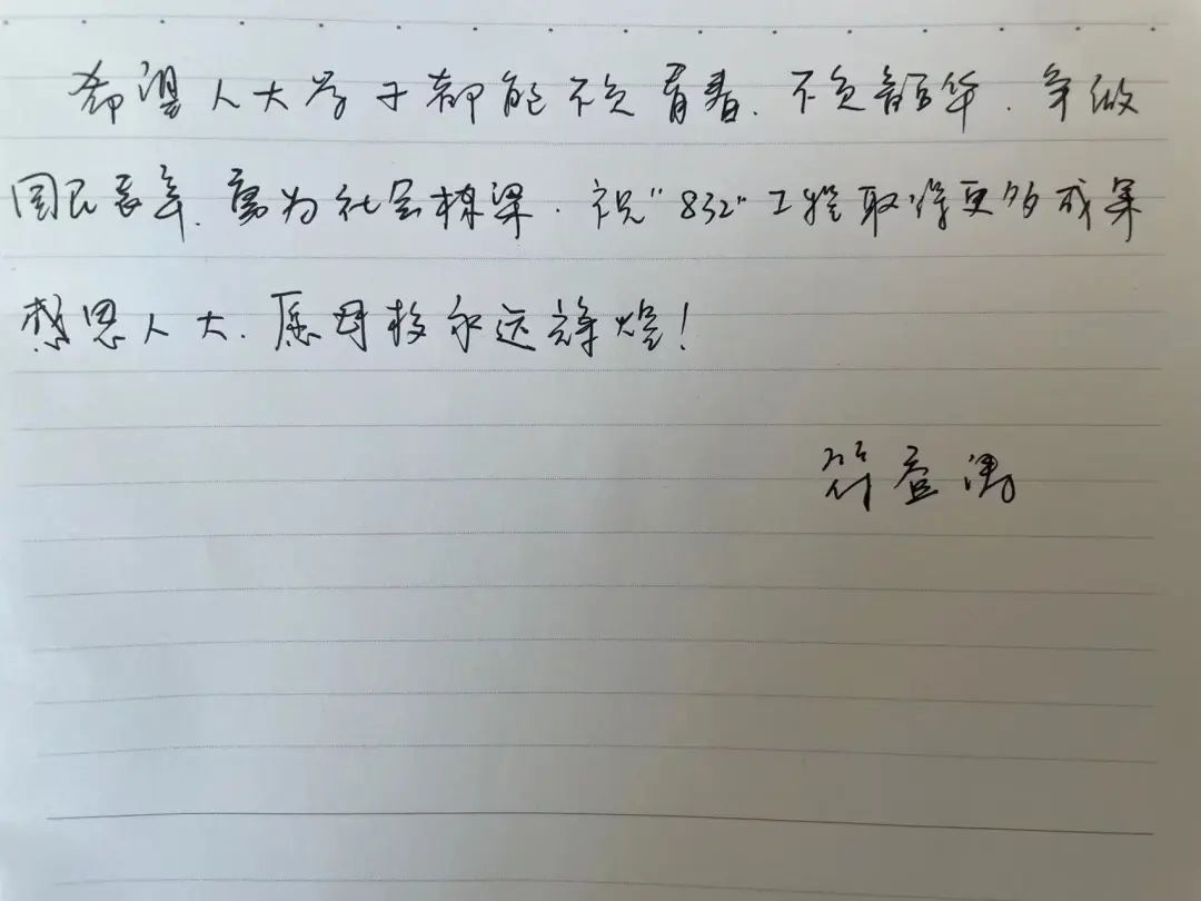 ▲在湖北省利川县,访谈团收到了员工符益涛对人大学子的寄语