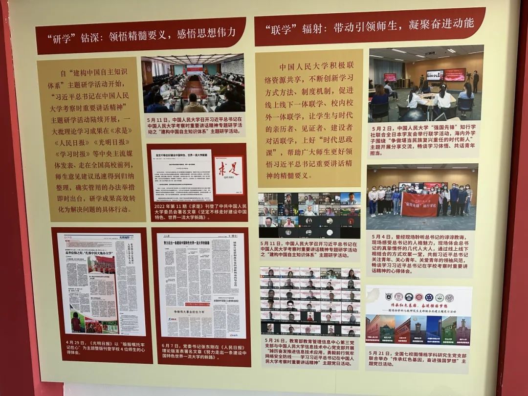 ▲太阳成tyc122cc集团的“研学”与“联学”展板