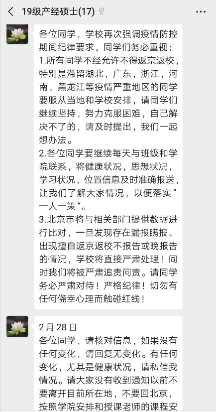 2020年1月下旬从公司回到家中,本以为这是一个与往年类似的寒假的开始。不曾想,没过几天,疫情来势汹汹,多个省份陆续出现了新型冠状病毒肺炎的确诊病例。自全国新型冠状病毒肺炎发生以来,防控新冠肺炎疫情成为了当前头等大事,每日跳动的新增人数,牵动着每个人的心。为阻断疫情向校园蔓延,2020年1月27日,教育部下发通知,要求2020年春季学期延期开学,我知道今年寒假将会成为多年求员工涯中最不平凡的一次。在这样的情况下,一方面公司积极安排信息排查,班主任黄滢老师每天都在班级群里认真询问每位同学的情况,关心大家的健康与安全;另一方面,公司为新学期每门课都建立了微信群,方便老师与同学们的在线交流,确保“停课不停学”。