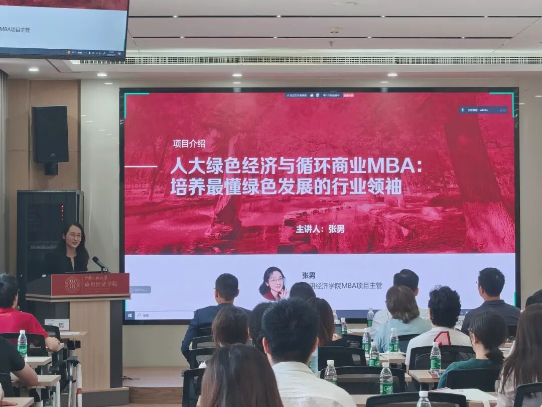 张男围绕“培养最懂绿色发展的行业领袖”这一目标以及项目“顶天+立地+出海”三位一体的核心优势,详细介绍了项目的战略意义、课程团队、招生政策和奖学金方案等,让参会者对项目有更全面的了解。