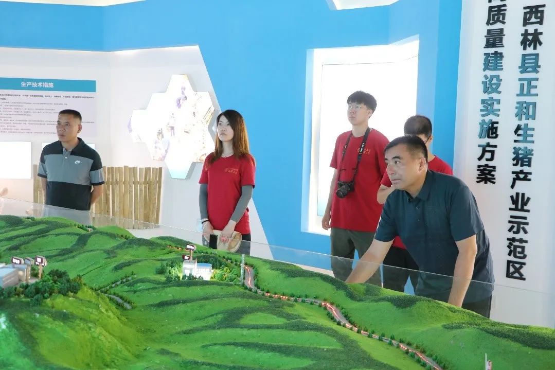 7月30日上午,调研团到达西林威后湖生态农业旅游有限公司现代化养殖示范基地,考察当地养殖产业发展情况。