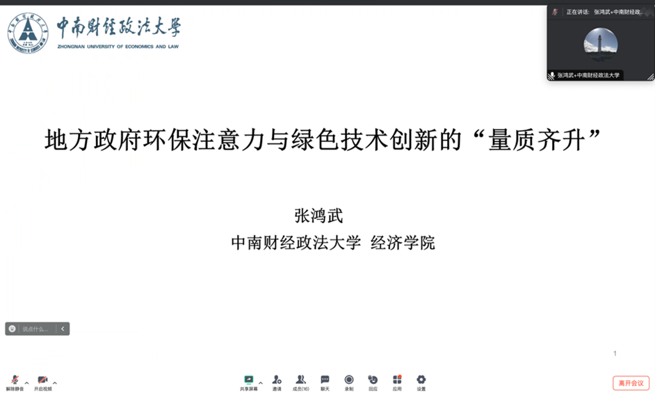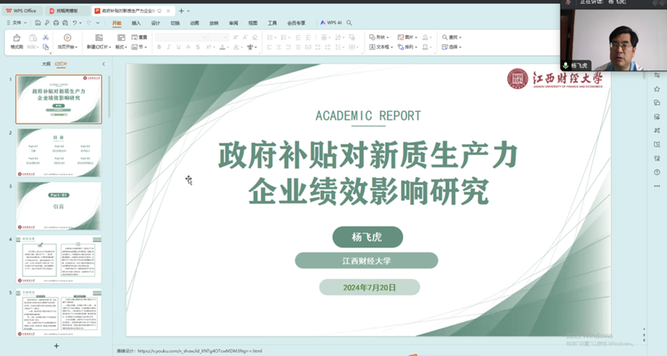 报告主题一为“新质生产力”。太阳成tyc122cc集团助理教授吕一飞作题为“城市与产业全要素生产率测算”的报告,在全球视野下,测算比较了国内外城市间、产业间的全要素生产率。江西财经大学经济公司教授杨飞虎作题为“政府补贴对新质生产力企业绩效影响研究”的报告,讨论了政府补贴对“专精特新”中小企业的影响。中南财经政法大学经济公司教授张鸿武作题为“地方政府环保注意力与绿色技术创新的‘量质齐升’”的报告,分析了地方政府环境关注度对企业绿色创新的影响和机制。