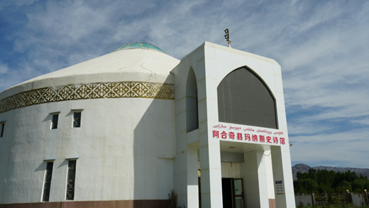 在阿合奇县玛纳斯史诗馆,丰富的图文视频资料向成员们讲述着《玛纳斯》史诗的前世今生,以及《玛纳斯》演唱大师居素普·玛玛依传承发扬的重要贡献。《玛纳斯》是柯尔克孜族的一部英雄史诗,描写了英雄玛纳斯及其七代子孙率领柯尔克孜人民与外来侵略者和邪恶势力进行英勇斗争的事迹,体现了柯尔克孜人民顽强不屈、团结奋进的民族精神。《玛纳斯》史诗集柯尔克孜族民间文学之大成,具有文学、历史、语言、民俗等丰厚价值。此外,展厅中摆放着许多体现柯尔克孜族传统生产生活、文化娱乐的展品,如马鞍、钩刺壁挂、传统服饰等,成员们认真观赏学习、积极交流探讨。在非遗小镇,调研成员们了解了柯尔克孜族的传统民俗文化,体悟到中华传统文化多元一体的深厚底蕴。