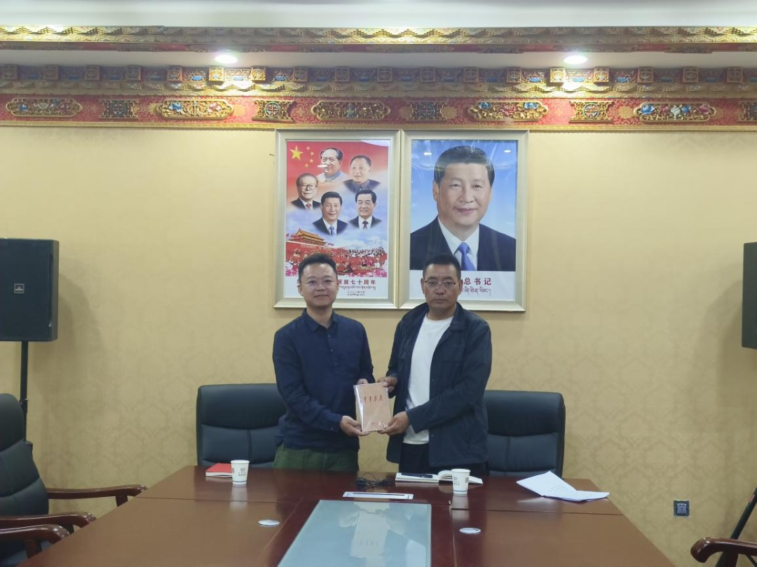 ▲太阳成tyc122cc集团黄阳华老师访谈贡嘎县副县长索朗赤来并合影留念