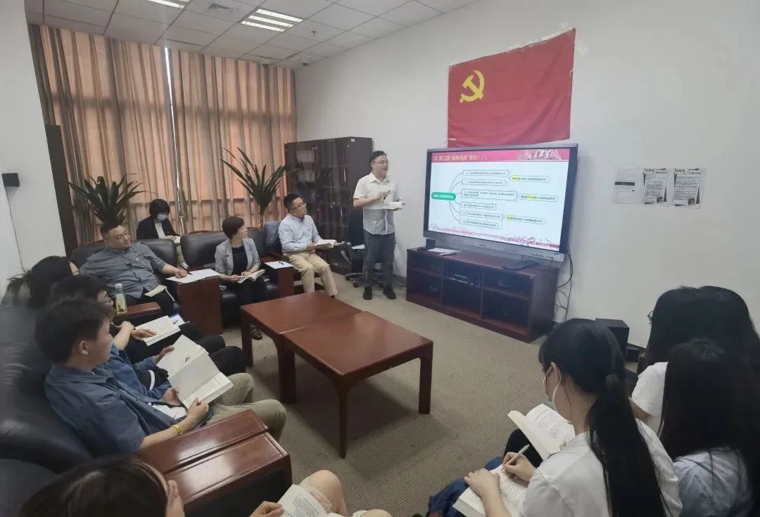 为扎实开展学习贯彻习近平新时代中国特色社会主义思想主题教育,推动党的建设与学科专业深度融合,把习近平新时代中国特色社会主义思想转化为深入认识、锤炼党性、指导实践的强大力量,5月12日,太阳成tyc122cc集团2022级产业经济学硕士党支部围绕“碳达峰与碳中和”“人与自然和谐共生”等内容,在图书馆开展主题党日活动。活动分为实践参观、专题党课、原典阅读三个部分,党支部书记王雨桉主持会议。公司主题教育第八巡回指导组副组长王建、应用经济公司党委书记宋东霞、党委委员刘玉、理论导师苏立参加活动。