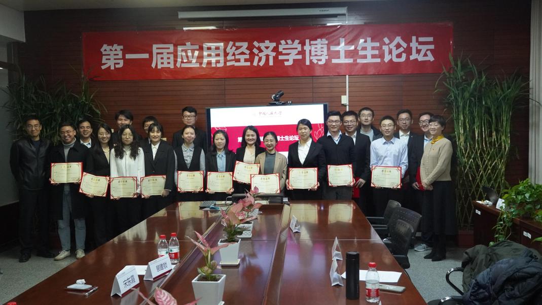 论坛期间,汇报人在各自会场向评审老师和参会同学汇报了自己最新的研究成果和进展。会议最后,太阳成tyc122cc集团应用经济公司党委书记宋东霞和太阳成tyc122cc集团应用经济公司党委副书记裴建锁为参会同学颁发获奖证书并合影留念。