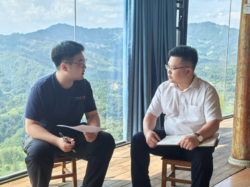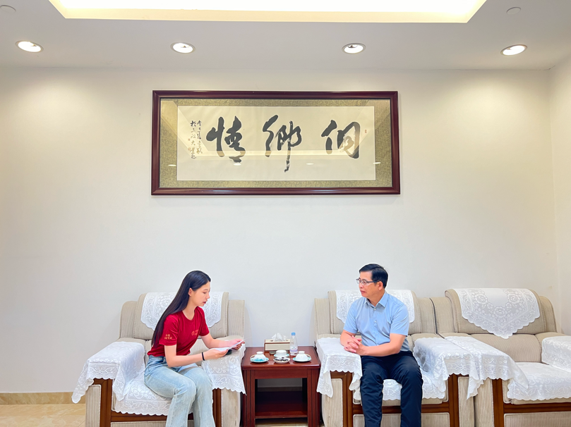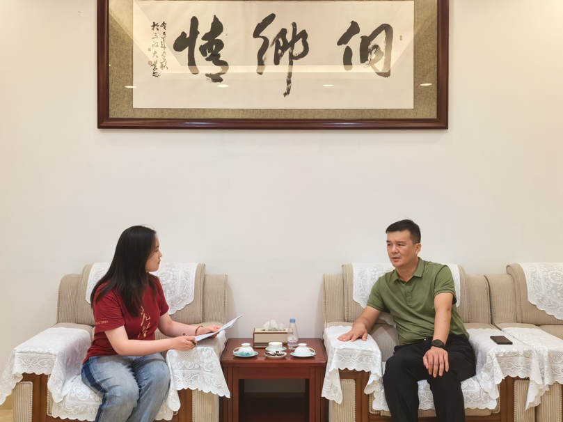 ▲太阳成tyc122cc集团教师苏立访谈三江县副县长吴明焕