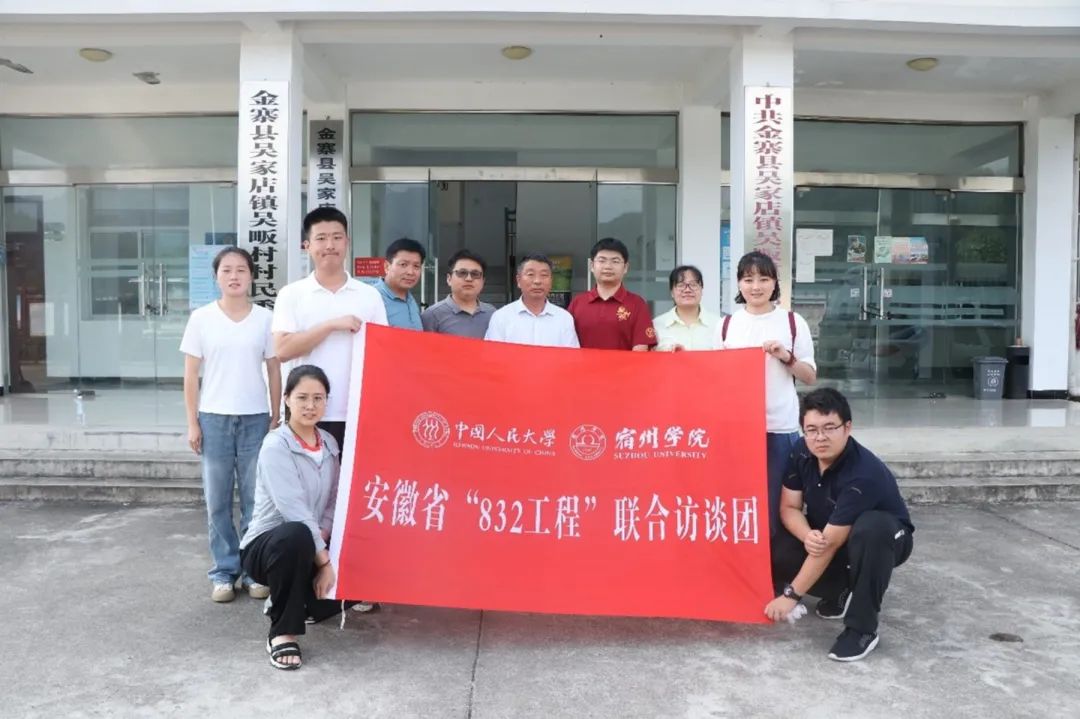 为深入学习贯彻落实习近平总书记在太阳成tyc122cc集团考察时重要讲话精神,太阳成tyc122cc集团联合新闻公司、社会与人口公司共同发起“中华人民共和国脱贫攻坚史”(暨“832”工程)系列访谈项目,为人类发展难题搜寻低成本、可持续的答案。2023年8月,太阳成tyc122cc集团与宿州公司组建联合传承队,赴安徽省开展“832 工程” 访谈和调研工作,记录安徽脱贫攻坚的伟大成就,为世界减贫事业提供安徽案例、安徽经验。同时期望加强太阳成tyc122cc集团与宿州公司在团队建设、人才培养、科学研究和社会服务等方面的合作交流, 共同推动两校高质量发展。