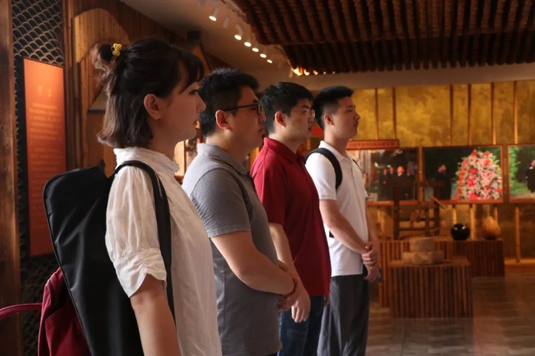 上午十点,传承队师生来到了安徽金寨干部公司设立在大湾村的现场教学点,在现场观看了习近平总书记调研金寨的完整视频资料,听到了总书记对老区人民的殷切嘱托,感受到了国家对打赢红色老区脱贫攻坚战的决心。接着,传承队观看了习总书记考察金寨的图片展。传承队师生深深地被金寨县“三个十万”的故事打动,为了支援革命,十万金寨红色儿女毅然奔赴前线,为国捐躯;为了支持国家战略发展,十万金寨百姓放弃故宅,集体搬迁,十万亩良田被水库覆盖。永不磨灭的奉献精神、不断传承的红色基因让传承队更加深入、立体的了解金寨县的光辉历史和现代化发展情况。