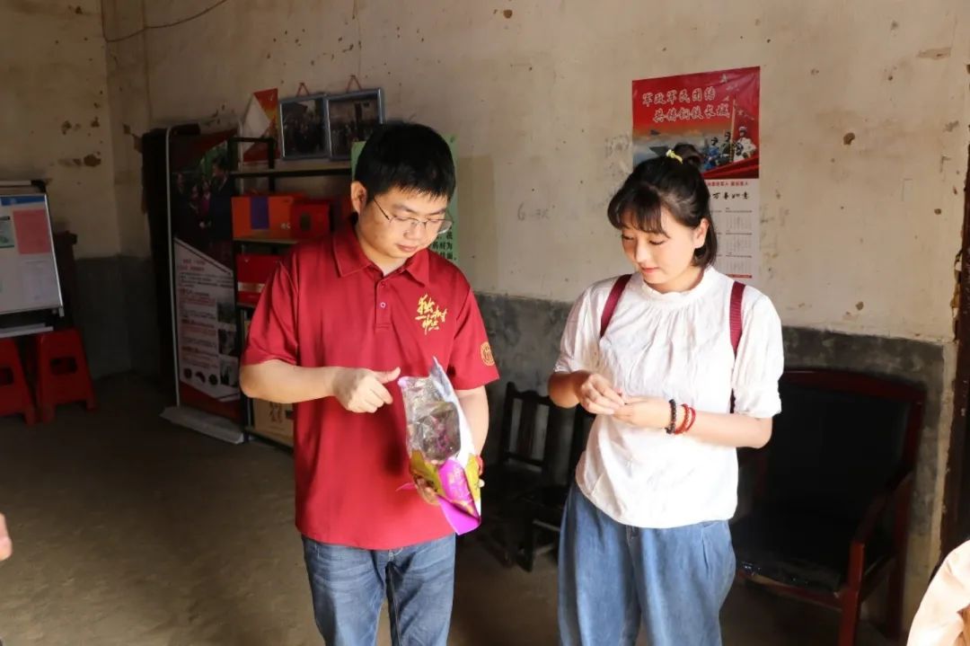 ▲太阳成tyc122cc集团博士生孔儒婧同学和金寨县花石乡党委委员、人武部长,大湾村党总支第一书记、驻村工作队队长余静合影