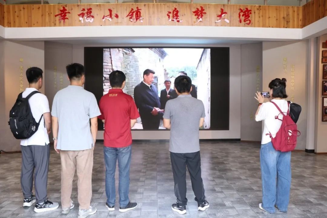 ▲传承队师生观看“追梦路上的大湾村“图片展