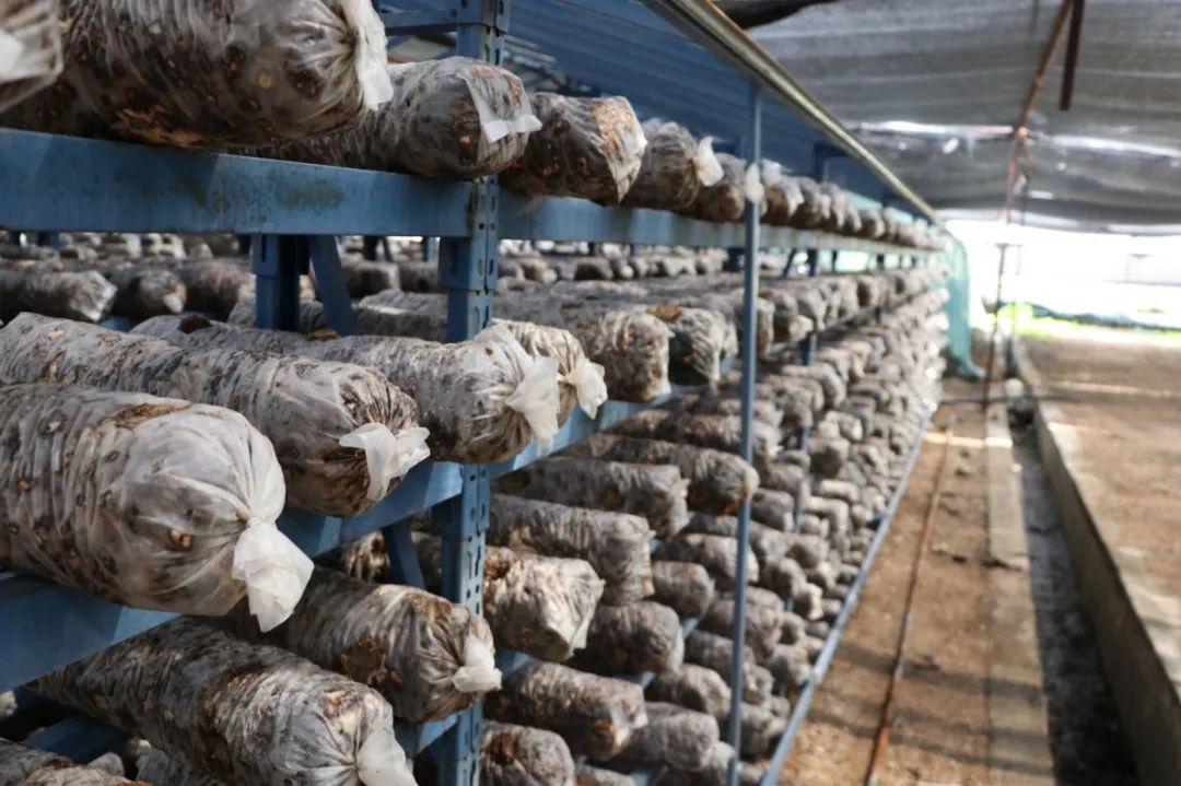 ▲铁冲乡香菇产业基地的香菇菌包