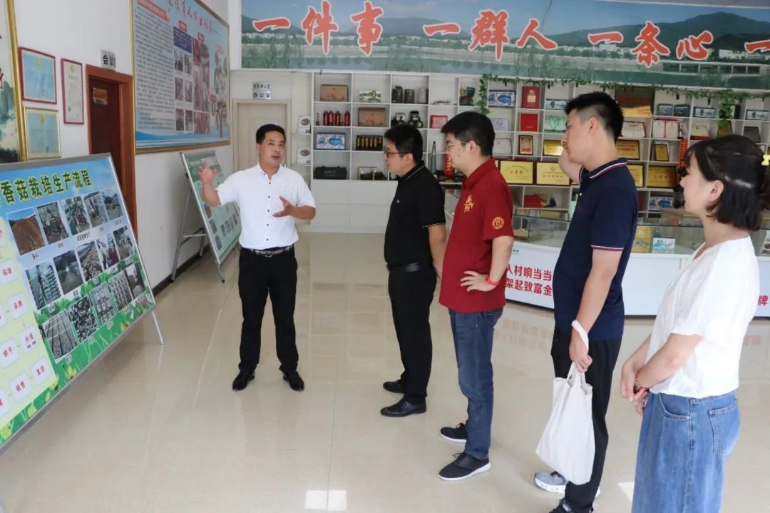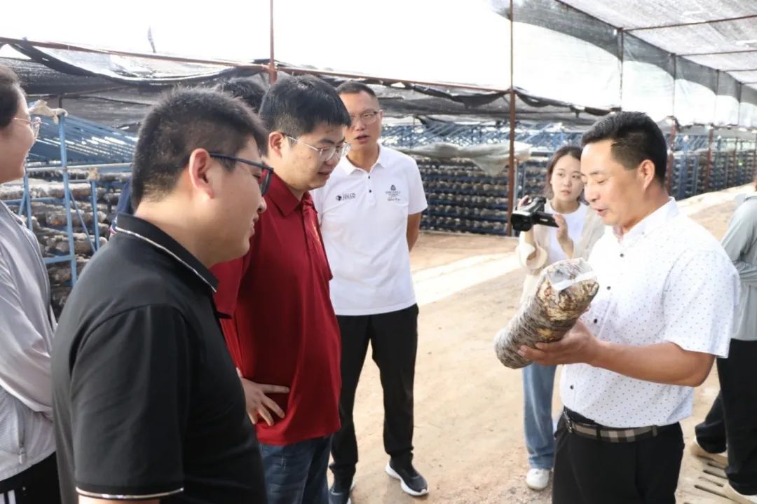 随后,传承队参观调研了铁冲乡的香菇产业基地。铁冲乡铁冲乡通过招商引进安徽农耕年华农业发展有限公司,同样采取了“公司+村集体+贫困户”的发展模式,在全乡6个行政村各建1个香菇种植基地,并在高畈村建立1座香菇扶贫产业服务中心。 安徽农耕年华农业发展有限公司总经理王汉青介绍道,种植香菇所需的设施基本上由政府提供,前期菌棒种植的所有风险由公司承担,交到农户和村集体的菌棒都是100%出菇的,基本消除了农户的风险。同时,合作社提供技术指导,统购统销,基本能满足每户每年增收30000元,净增收15000元,是当地的重点扶贫产业。