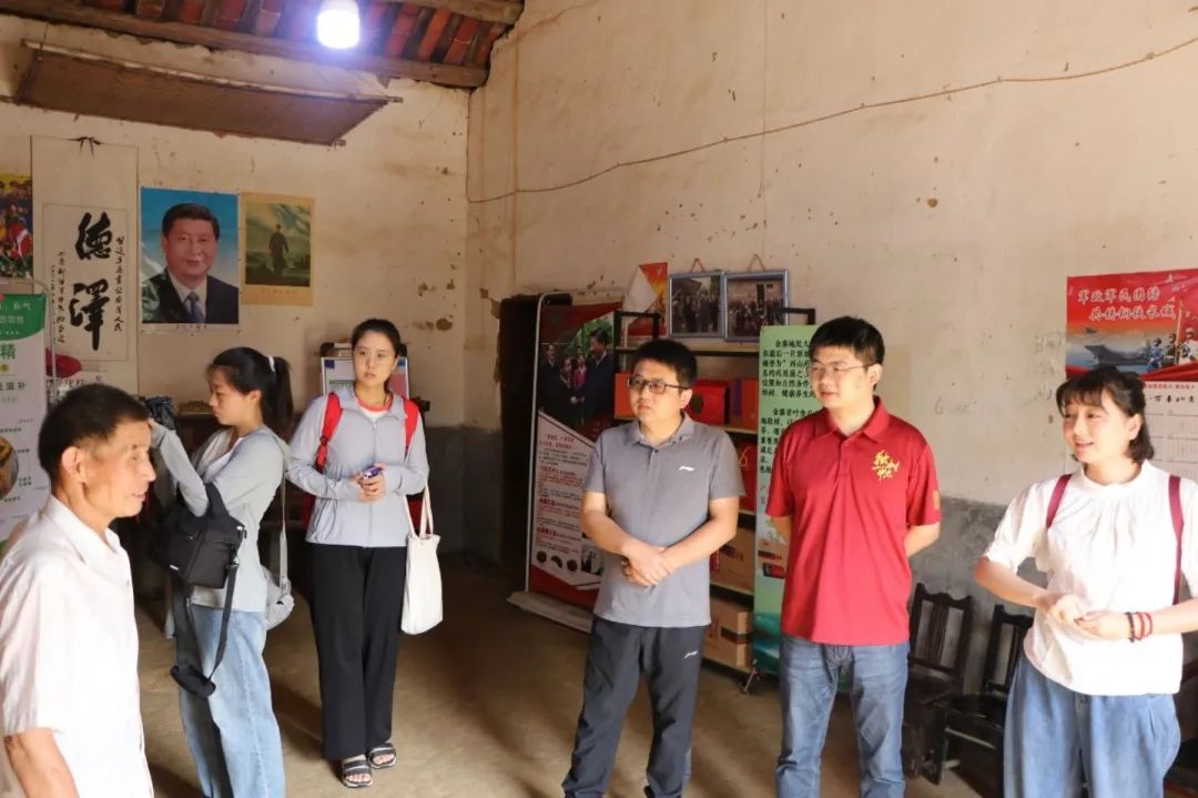 传承队师生首先参观了陈泽申老宅,陈泽申老人热情地欢迎了传承队。2016年,习近平总书记赴安徽考察调研时,曾在这里与大湾村村民围坐在一起亲切交谈,听取村民对扶贫政策的想法。如今,这里依旧保留着当时习总书记到来时的布局,墙面上挂着习总书记和蔼亲切地问候老人的照片。随着脱贫攻坚工作的开展,陈泽申老人告别了破旧老宅,搬进了移民搬迁新建的小楼,还当上了公益岗位的保洁员,年收入3万多元,已经脱离了贫困。
