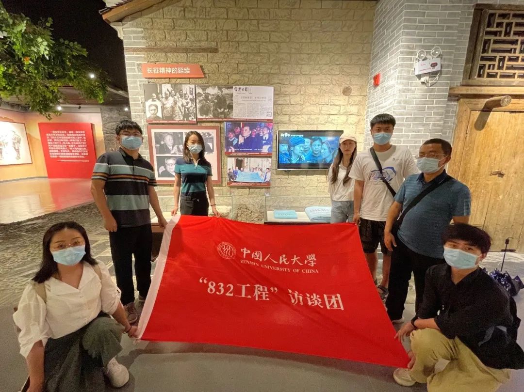▲2022年,“832工程”访谈团在湖南省汝城县沙洲村“半条被子”故事发生地,与1996年人民大学、北京大学员工联合签名送给徐解秀家人的一条崭新被子处合影留念