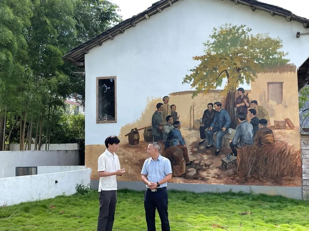 2022年,在湖南省汝城县毛泽东同志故居前,土桥镇党委书记袁会卿向调研团成员介绍当地红色文旅发展经验