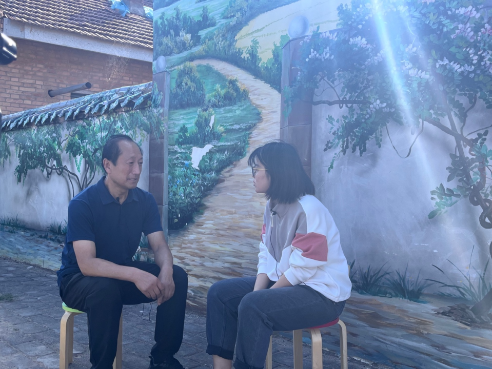 ▲于东立同学访谈黄家寨子村党委书记柳志红