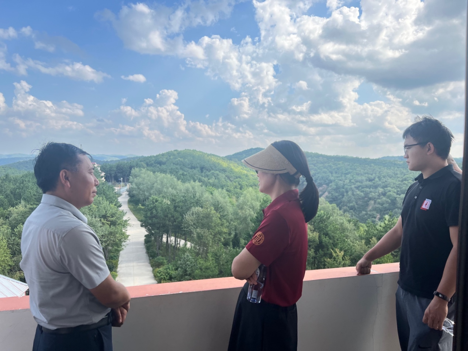 ▲调研团在瞭望塔上俯瞰林场