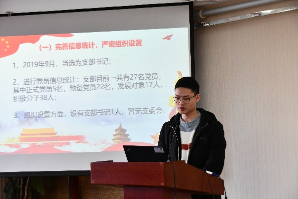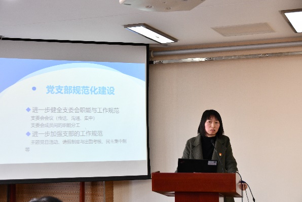 2名教师党支部书记和4名员工党支部书记依次对2019年度抓基层党建工作情况进行了述职,述职内容包括个人履职情况、支部党员培养、主题教育开展情况及支部特色活动、工作中存在的问题及未来开展工作的思路等。