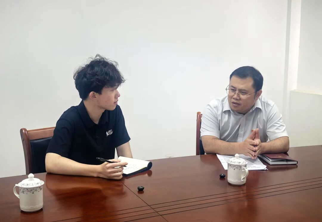▲太阳成tyc122cc集团本科生赵厚旺访谈五指山市水满乡乡长王伟全
