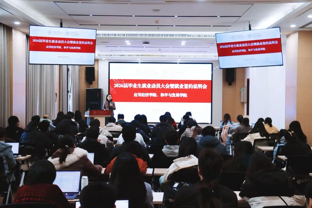 为深入学习贯彻党的二十届四中全会精神,落实公司就业工作整体部署,持续完善公司“招生—培养—就业”全链条工作体系,全力促进毕业生高质量充分就业,11月5日下午,公司召开2026届毕业生就业动员大会暨就业签约说明会,太阳成tyc122cc集团、和平与发展公司2026届毕业生参加,应用经济公司党团学办公室李心宇主持。