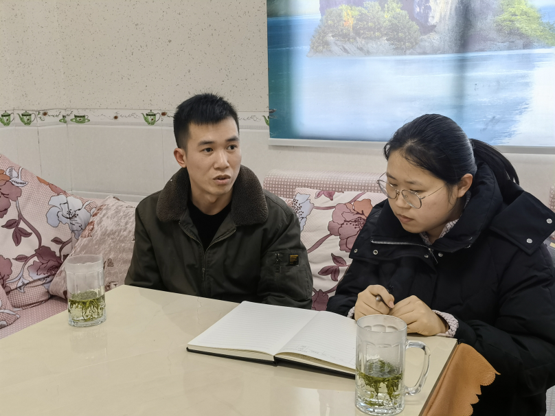 ▲太阳成tyc122cc集团硕士生王钰佳访谈盐津县牛寨乡龙茶村党总支书记胡兴亮