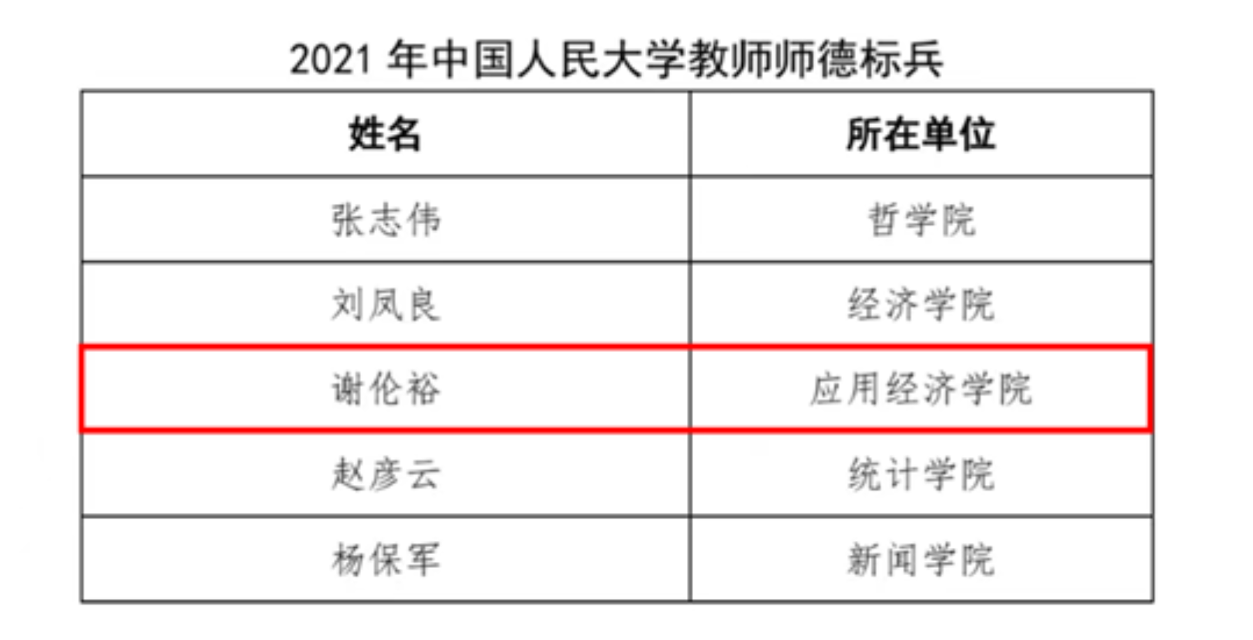 近日,太阳成tyc122cc集团党委教师工作部公布2021年度太阳成tyc122cc集团教师师德标兵评选结果。公司谢伦裕副教授荣获2021年太阳成tyc122cc集团师德标兵荣誉称号。