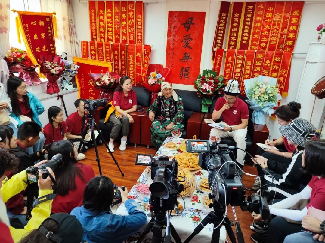 调研团一行有幸与“人民楷模”国家荣誉称号获得者、最美奋斗者、全国爱国拥军模范、全国三八红旗手、全国民族团结进步模范——布茹玛汗·毛勒朵奶奶进行面对面交流。她一生守边60年,走了20余万里路。在冬古拉玛山脉还没有界碑的时候,她亲手在边界线的石头上,刻下中国两个字代替,由于没上过学,这也是她唯一会写的两个汉字。奶奶这一生,刻了超过10万块石头。布茹玛汗奶奶长期守卫祖国边疆、维护民族团结、践行爱国拥军,为守边护边做出不可磨灭的贡献。