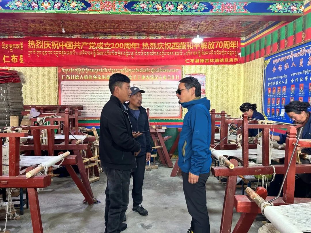 ▲访谈团在仁布县德旦康萨民族手工业合作社调研