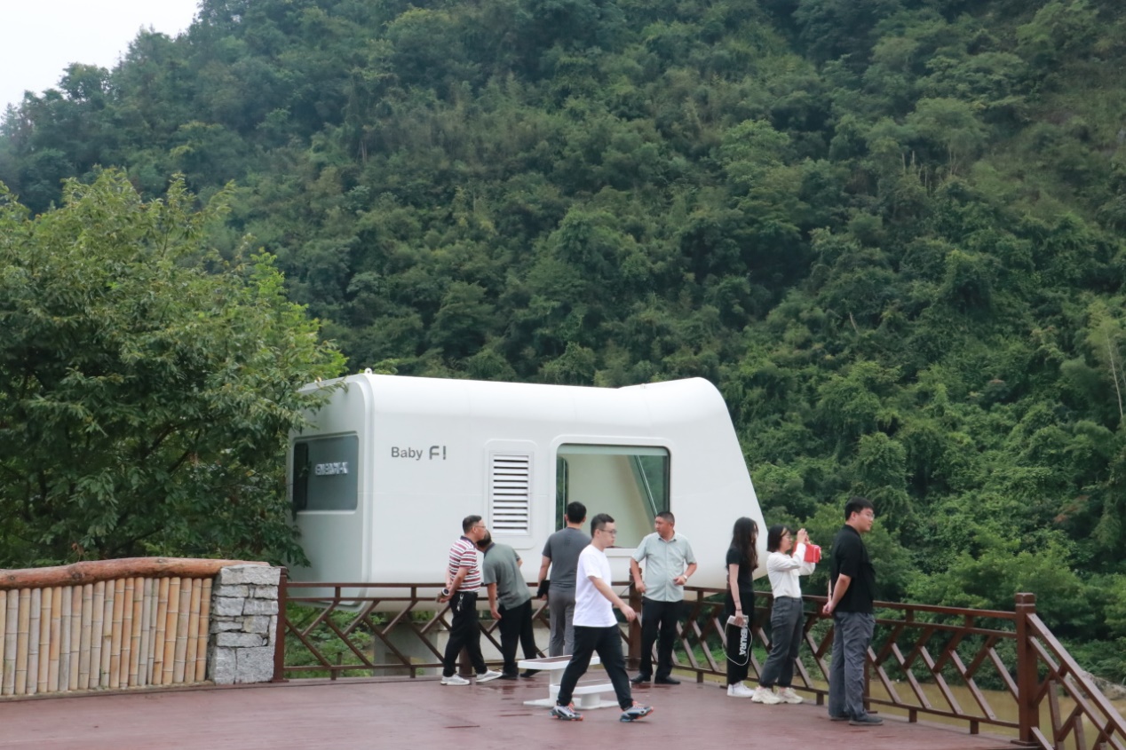 ▲田间地头队实地调研岳西县毛畈村太空舱民宿产业