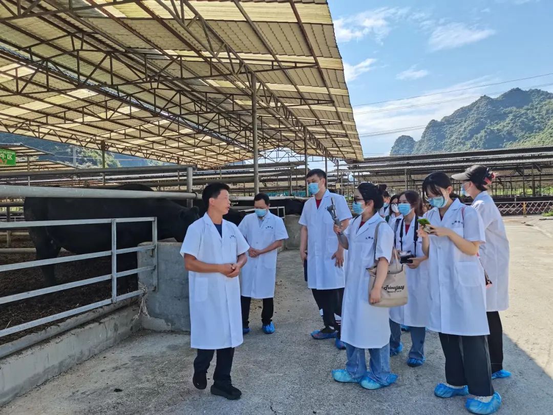7月24日下午,调研团抵达都安瑶族东庙村安宁村,调研都安盛兴生态养殖专业合作社。其主营业务是瑶山牛自繁自育销售。安宁村地处大石山区,人均耕地仅0.65亩,山多地少,资源匮乏,自然条件恶劣等客观因素,严重制约着全村的经济发展。根据村情,村支书韦克率先带领当地村民于2016年6月29日注册成立都安盛兴生态养殖专业合作社。合作社通过“以养带种、以种促养、种养结合”的养殖模式,探索出了“共同筹资、共同出力、共担风险、共同受益”的合作社+脱贫户的互助共养模式。在合作社的带动下,安宁村率先实现对全村脱贫户的全覆盖,经过3年不懈努力,2019年顺利实现整村脱贫。