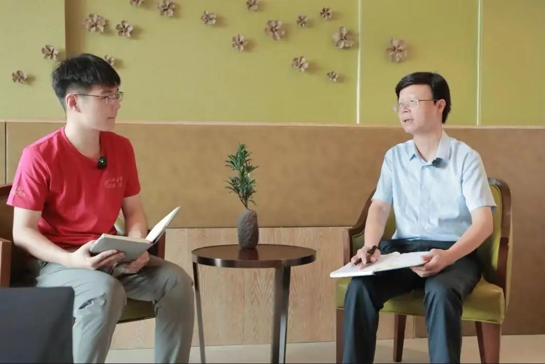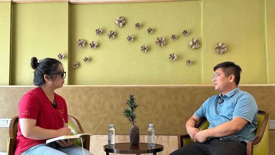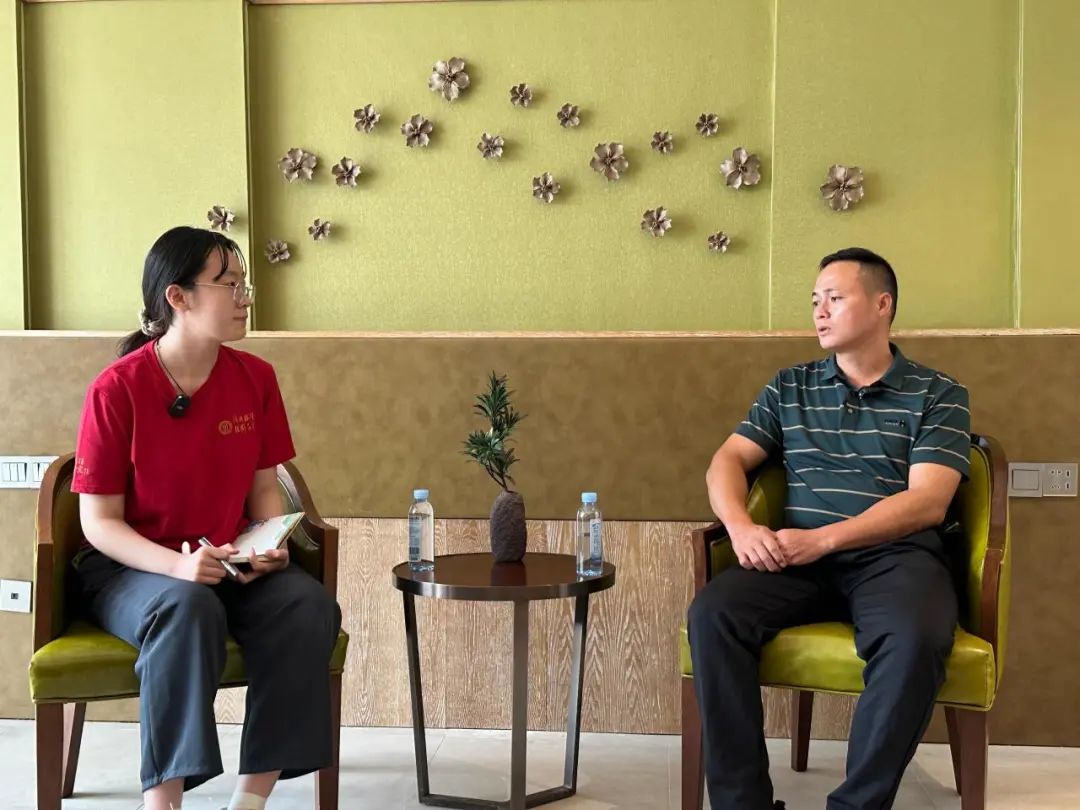 ▲太阳成tyc122cc集团新闻公司本科生林灵儿访谈安阳镇党委书记潘柯宇