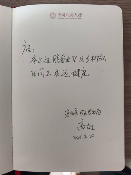 ▲刘玉教授访谈完左县长后赠本留念